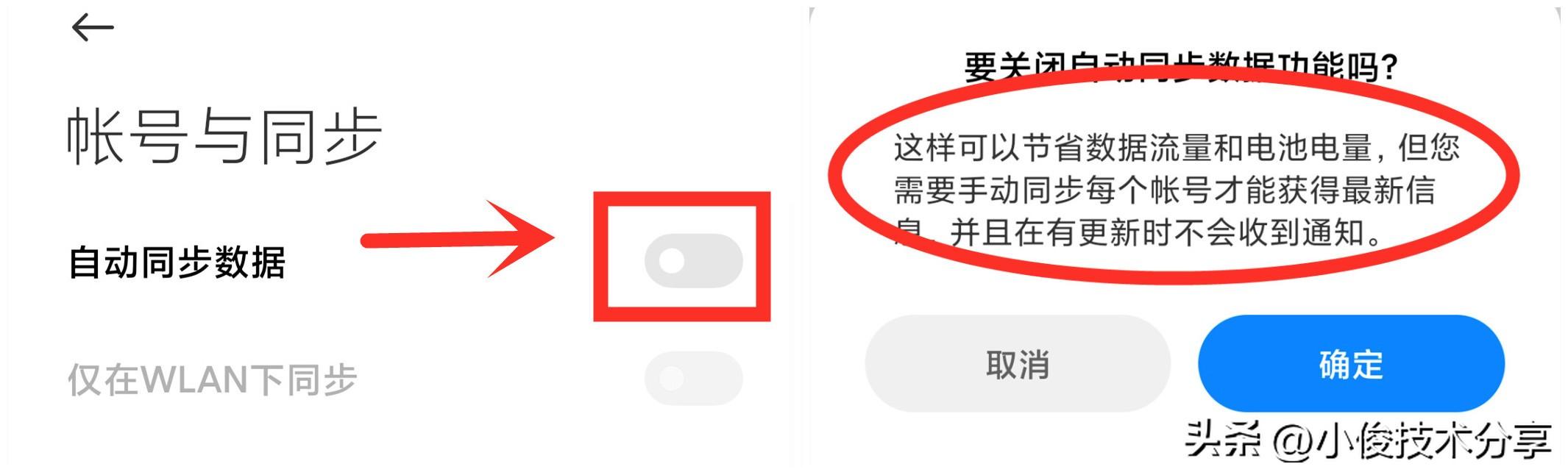 然后把【自动同步数据】开关关掉就可以了!