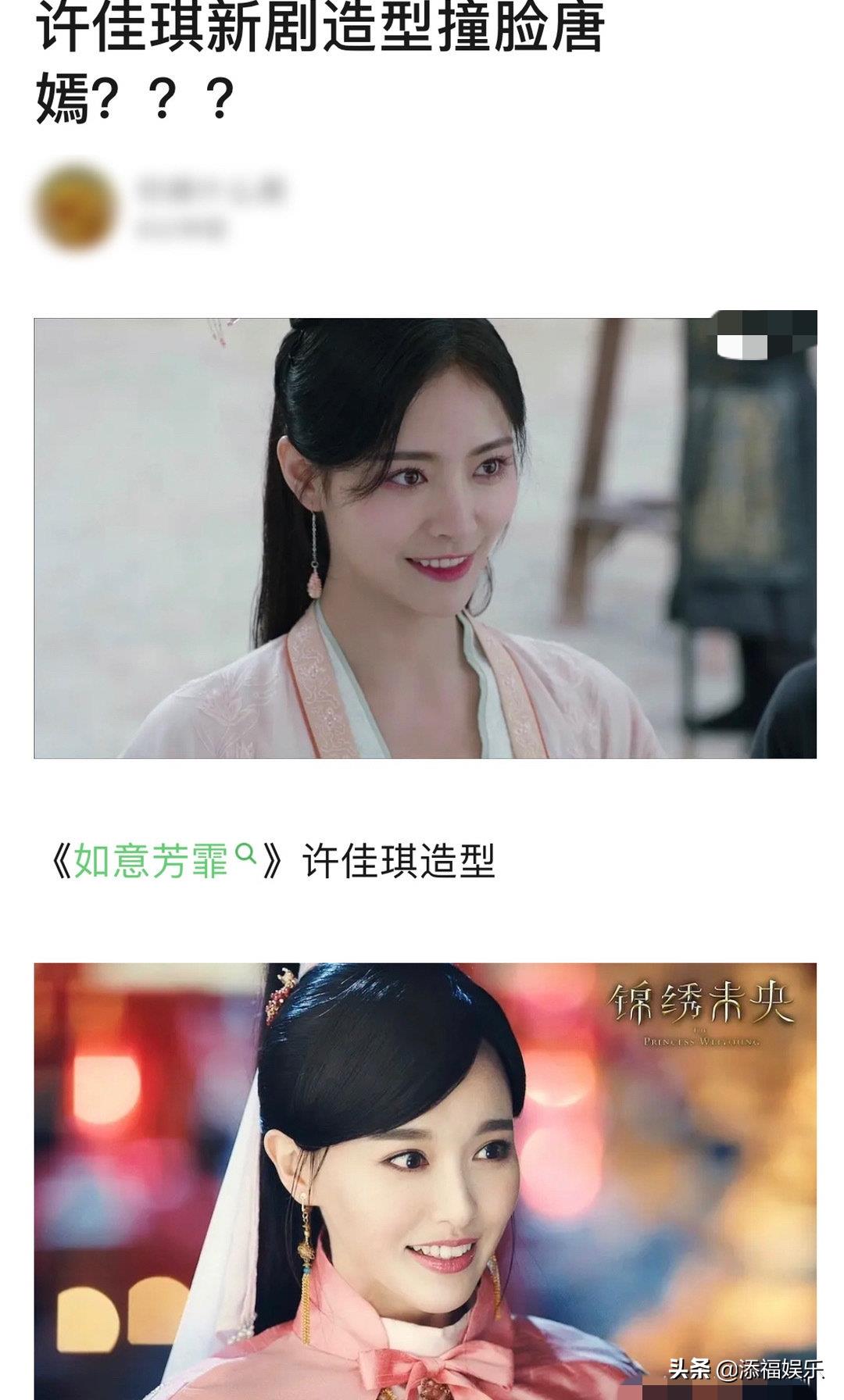 除了鞠婧祎之外, 就像今年出道一样THE9徐佳琪也出演过,徐佳琪作为新人,自然不会有那么多的戏份,但能有镜头已经是一种锻炼, 然而,徐佳琪一出现就引起了观众的讨论,因为这种造型与唐嫣《锦绣未央》中的造型非常相似。