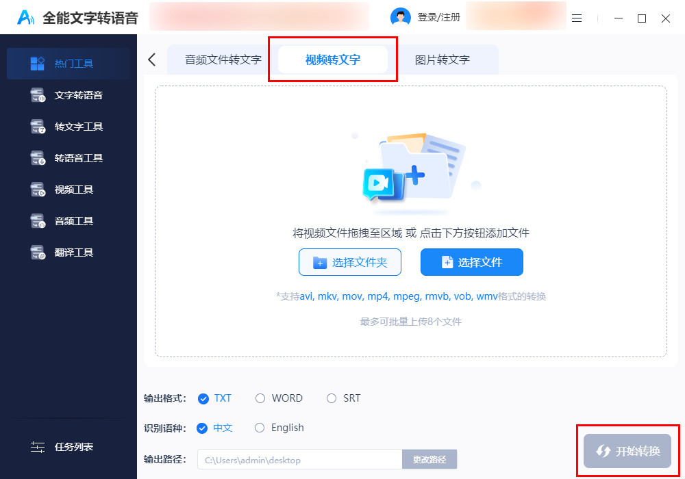 操作步骤:打开全能文字转语音软件,选择“视频转文字”,这里我们可以选择单个视频或者多个视频,而且这款软件支持的视频格式多样,我们不用担心格式不兼容问题,最后点击“开始转换”就可以进行转换了。操作相对简单,转换效果也挺不错的。