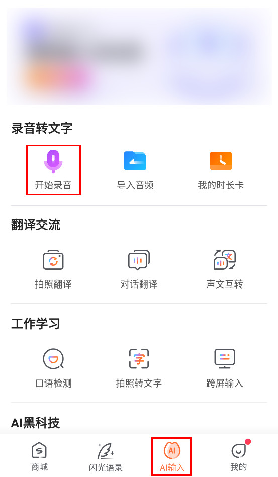 操作步骤:打开搜狗输入法,在“AI输入”里找到“开始录音”,我们利用它的录音转文字功能,帮我们把视频转成文字,提高我们的效率。