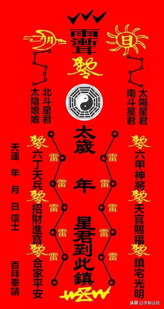 3.太岁出于北斗,归万星之母斗姥元君或北极上帝管,所以符头要在两这位主事神的名或讳字。