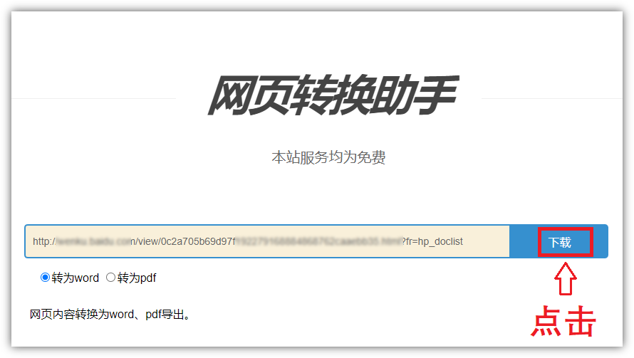 随后就会跳转到网页转换助手界面,你可以免费下载这份文库,支持转换成Word和PDF格式。