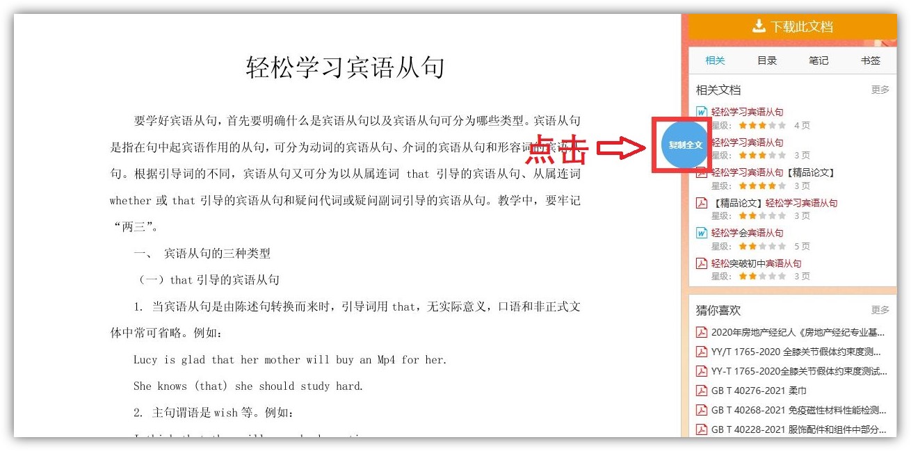 打开需要下载的文档页面,然后点击开启网页万能复制,将当前网页添加到插件上,接着就可以看到“复制全文”按钮,点击进行全文复制。