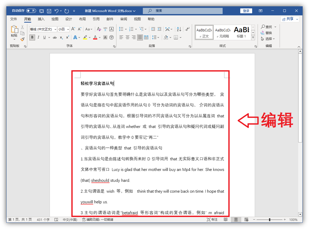 新建一个Word空白文档,将复制的文本粘贴进去,就可以编辑文档内容了,最后保存导出新文档。
