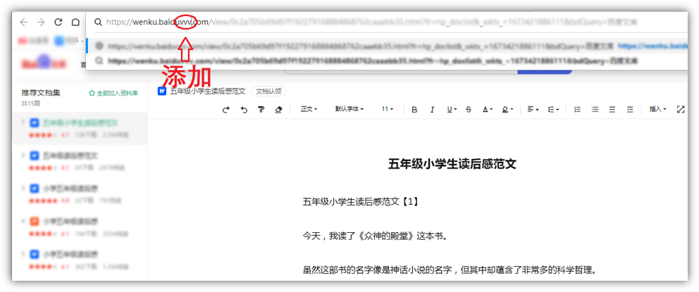打开任意一篇文库的链接,在顶部的地址栏baidu后面添加“vvv”,然后按下回车键,如图所示: