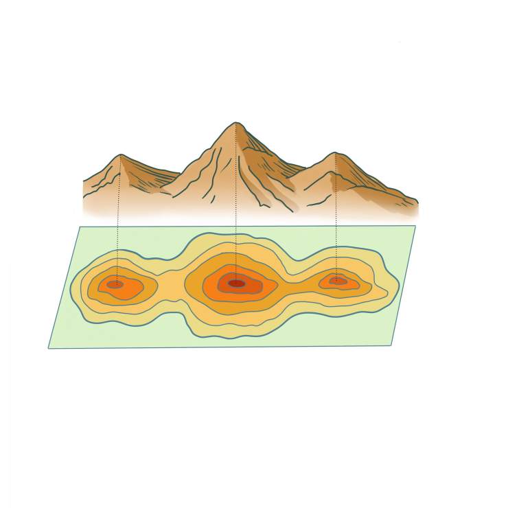 地图绘制的基本原理,可以理解为“降维投影”——把高低起伏的三维地形地貌,投影在二维的地图平面上,并用各种图形、符号表现。就如同我们照相,是把三维的人拍成二维的照片。