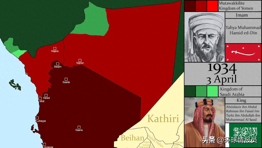 在战争中,拥有英军装备支持的沙特军队战胜了也门军队。1934年,沙特和北也签署了《塔伊夫条约》,沙特事实上占据了也门北方部分土地。