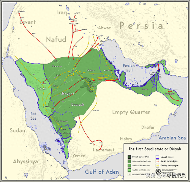 沙特之所以能占据这么大的国土,首先,是凭借历史上沙特家族的“努力”与智慧。