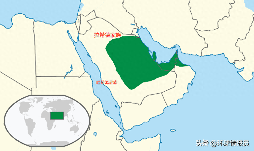 其中,穆罕默德的后人——哈希姆家族一直占据半岛西部的狭长地带——汉志,包括麦加和麦地那。