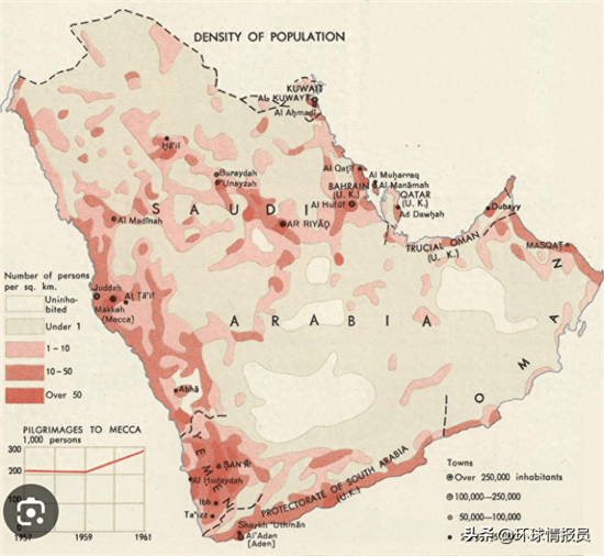 ▲阿拉伯半岛的人口密度