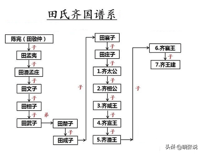 陈国灭亡以后, 后代以国为名, 这边是陈姓的由来。所以, 舜帝的妫姓, 是夏姓(部分)、陈姓、田姓、王姓的来源。有说法妫完的四世孙须无生了个儿子叫田书,因为讨伐莒国有功, 被齐景公赐姓孙,为孙姓的一支,后代有孙武。