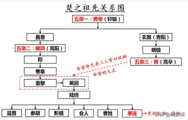需要重点讨论的是,同一个时代的氏,也可能成为后代的姓。比如说黄帝姬轩辕,是姬姓,他的二十五个孩子, 搞出十四个氏。而这十四个后代应该这么叫:姬姓某氏,但实际上这十四个氏也成为后世的姓的来源。传说里商朝的祖先契,是黄帝曾孙帝喾的孩子,因为辅佐大禹治水有功, 被封在商地,赐姓子。而这个用于区别于帝喾其他后代子孙的子氏,则成为商王朝君主的姓氏。而帝喾的另一个儿子后稷则一直以姬为姓,直到春秋战国时期后代才各种改姓。