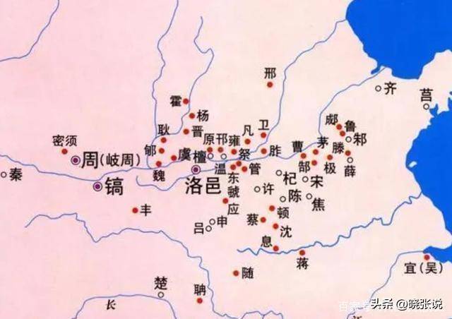红点标记为姬姓诸侯国