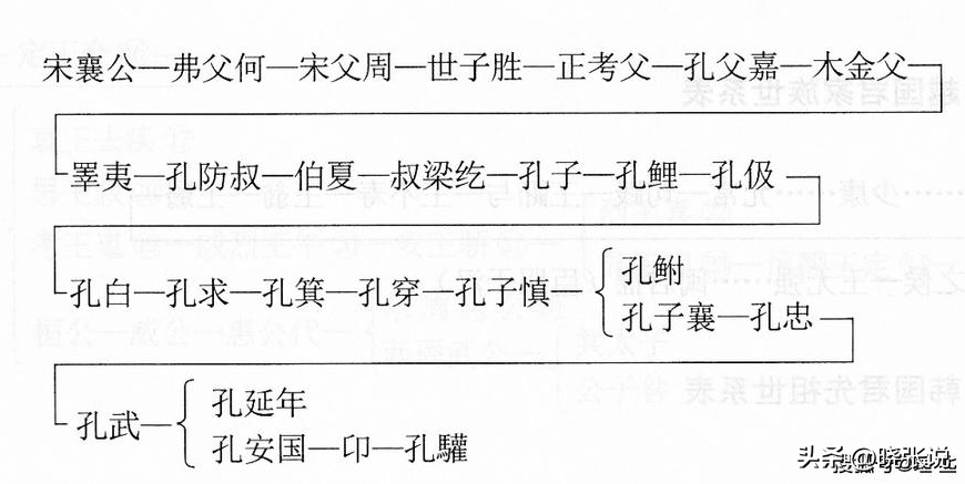 微子启去世以后, 其弟微仲即位,为宋公稽。宋公稽的八世孙出了个人物孔父嘉,子姓,名嘉, 字孔父。官居大司马,因为老婆太好看, 被太宰华父督惦记,最终导致孔父嘉被杀(前710年), 其妻子也自缢。当时的宋国国君宋殇公为此大怒, 华督又杀掉宋殇公,引出一起宋国内乱。孔父嘉死后, 儿子木金父为了避免被华督迫害, 以父亲的字为氏,为子姓孔氏。金父生睾夷,睾夷生防叔,孔防叔时期,实在是没地方去, 只好携家带口跑到鲁国。 他的曾孙就是孔子。