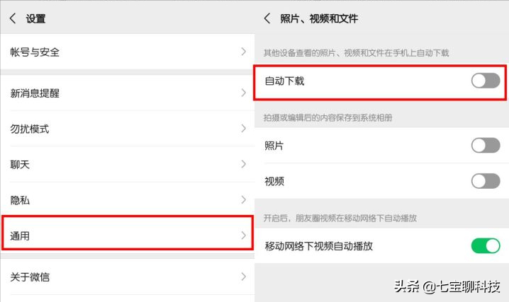 操作方法:打开手机微信——选择”我”——设置——通用——照片、视频和文件——关闭自动下载、照片、视频