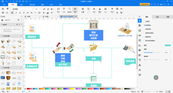 亿图图示为新手提供了新手引导,而且在操作方面采用非常傻瓜式的操作,如直接拖拽就可以把图形放置到绘图区域,还考虑到风格样式提供了很多的主题和符号库以及涉及各个行业的模板,对新手来说可太容易上手了。