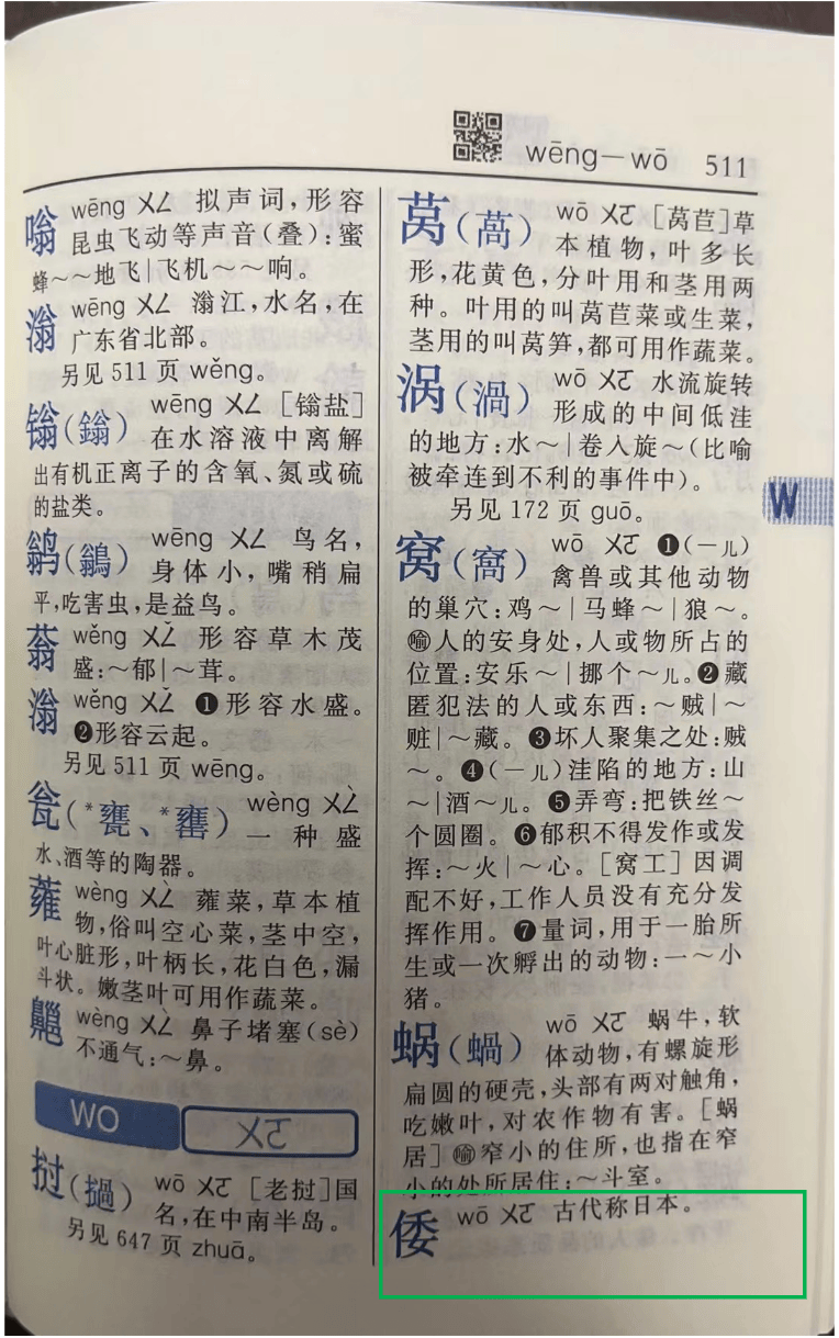 《新华字典》第12版内文“倭”字