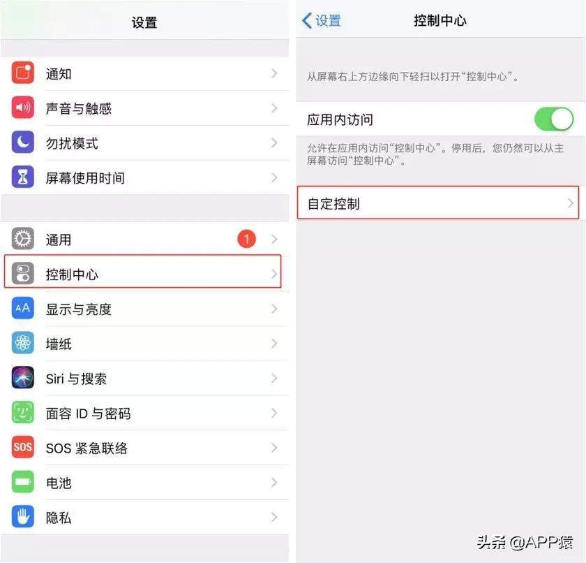 1、点击「设置」——「控制中心」——「自定控制」。