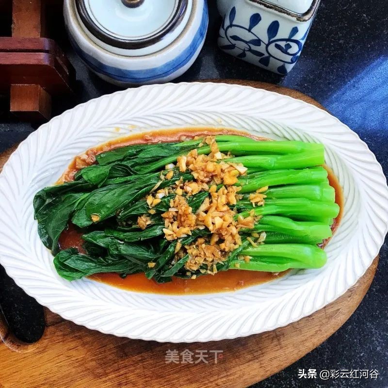 8. 淋入菜心上即可享用。