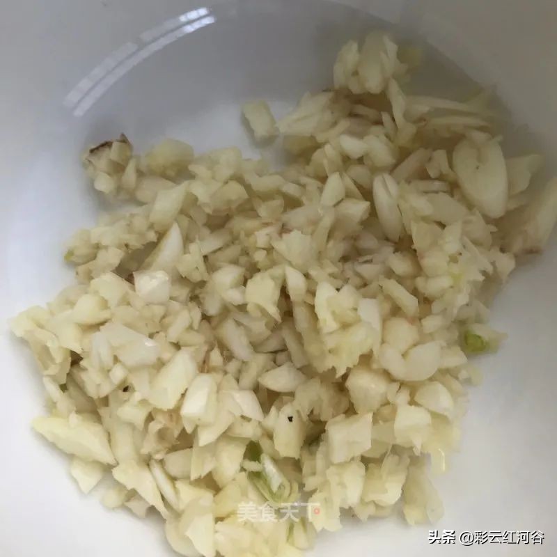 4. 大蒜切碎装入碗中。