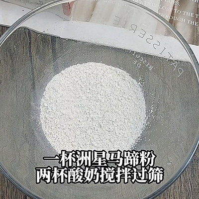 2、2、碗内加入100ml洲星马蹄粉,200ml酸奶,搅拌均匀后过滤一遍,得到酸奶生浆。