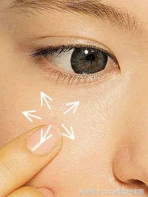 2.用手指沿剪头方向轻轻将遮瑕膏拍开后,再轻微涂抹,使遮瑕膏更加均匀、服帖。