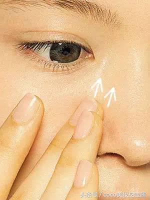 用手指蘸取少量遮瑕膏,从下至上轻轻涂抹。