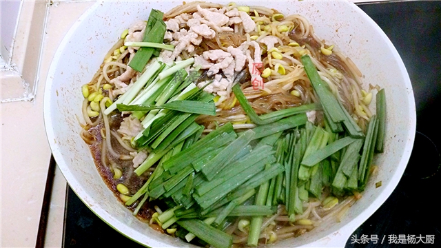 今天,我跟大家分享一道家常菜【黄豆芽炒粉条】,这道家常菜添加了韭菜的香气更美味哦。