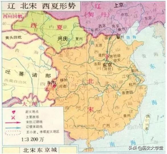 公元1038年,李继迁孙李元昊称帝,改元天授礼法延祚。建国号大夏,史称西夏。西夏在三川口、好水川、定川寨击败宋军,迫使宋仁宗签订“庆历和议”。