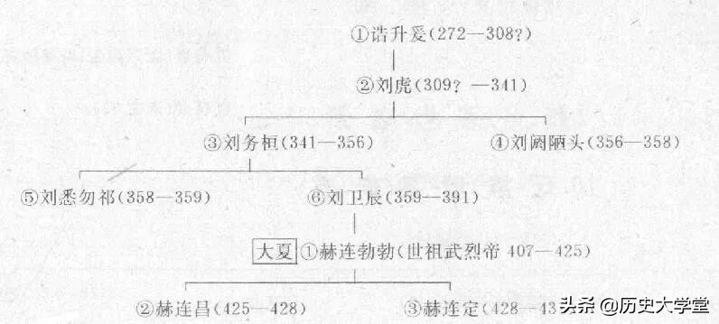 公元391年,北魏发兵进攻袭扰其的南匈奴铁弗部,铁弗部首领刘卫辰在混战中被杀,其子赫连勃勃逃往后秦。
