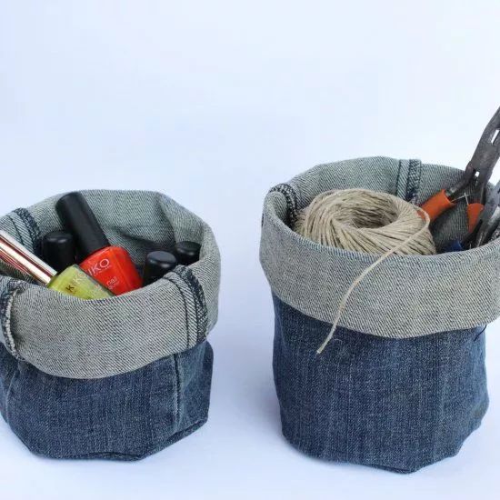 用硬一点的牛仔布做成一个笔筒,从材质到样式都是独一无二的一份。