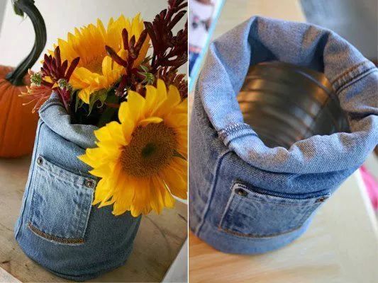 说起装饰,最少不了的就是家中各式各样的花瓶了,但是你能想到牛仔裤也能改造花瓶?当然可以!