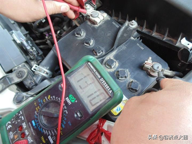 如果在车子启动时候测量,这时候可以认为电瓶工作在带负载状态,比静态测量电压要精确很多,类似于测量电瓶内阻了。电压电压没有低于11伏,可以认为电瓶的容量非常棒。如果启动时候电瓶电压低于10伏,可以认为电瓶状态不佳,如果启动时候电瓶电压已经达到9.5伏,可以认为电瓶已经快不行了。