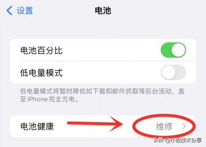 我们点击这个【电池】设置开关,接着选择【电池健康】