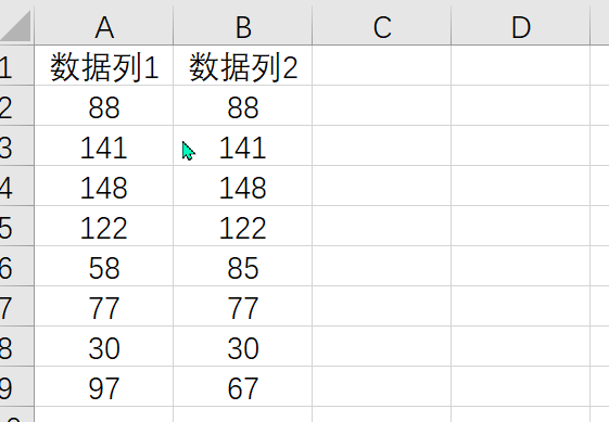 我们两列数据有差异内容,想找出来,则只需要输入CTRL+\,然后就找出来了,最后标一个颜色即可
