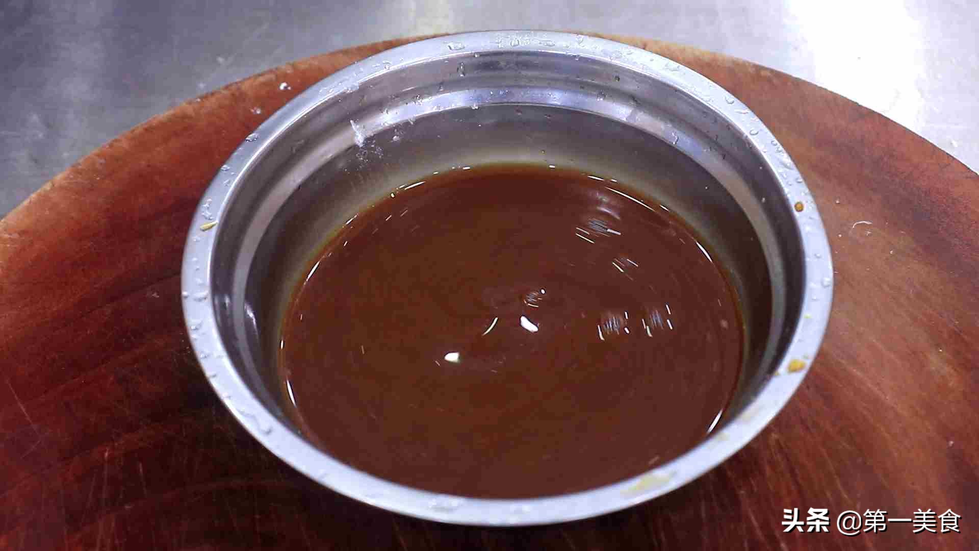 2.接着拿一个碗来调料汁,碗中加入食盐2克、白糖5克、香醋10克、生抽8克、老抽3克调底色,再放入适量的清水,加入一勺淀粉增加料汁的吸附力,搅拌均匀备用。