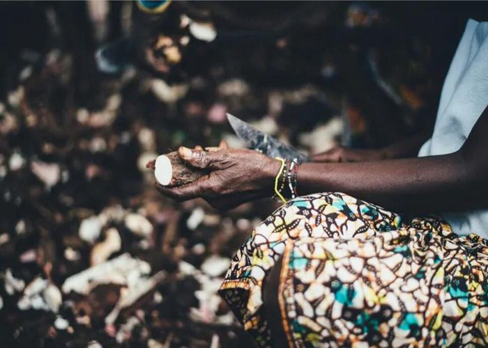 顾名思义,这个方法不用水处理。干法木薯粉加工的工艺流程主要是清理、去皮、切片、晾晒、磨粉,收获的木薯经筛子筛去表面泥土杂物,然后手工剥皮,剥皮之后切成片状或块状,放在阳光下晒干,最后将晒干后的木薯片或木薯块磨成细粉,细粉就是成品木薯粉。