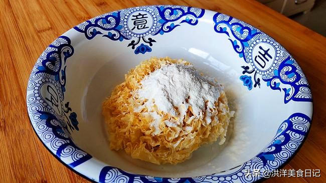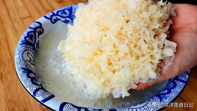 1、再来说清洗银耳,一般我们都会直接泡银耳,然后再洗两遍就可以了,那样可真的错了,洗银耳之前要先加一勺淀粉,因为淀粉可以有效的吸附银耳上的灰尘,同时还会令银耳更加的晶莹剔透。等银耳洗干净后,我们再用清水泡2个小时左右。