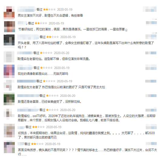 然而也有部分网友表示“开头老套、用了八百年烂俗的梗了,全靠女主颜值盯着了”、“剧情尴尬,ost不好听。2020年了还在出轨车祸狗血,滤镜审美土,服装发型土。人设立的太强硬,后期容易翻车”、“剧情实在太老套了 热巴倒是比以前演的更好了 只是可惜了男主太尬”、“画面没有质感,镜头真的不是开玩笑????”