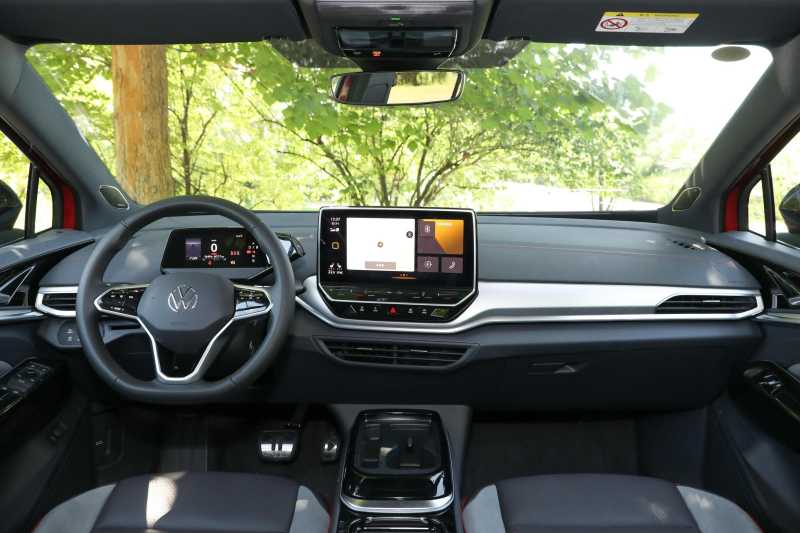 ID.4 CROZZ在内饰方面的设计,主打简约,实用的设计风格,没有什么花哨之处,中控显着比较规整,全液晶仪表的尺寸显着比较小,悬浮式中控屏幕也是必不可少,方向盘采用大众最新一代,根据不同配置,内饰的颜色搭配也稍显不同。