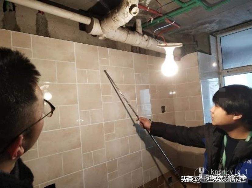 ④蓄水试验—-闭水实验时间为48小时,并通知楼下住户,和物业一起检查,期间我们可以观察水位是否明显下降,隔壁墙壁或楼下对应位置有没有渗水痕迹。