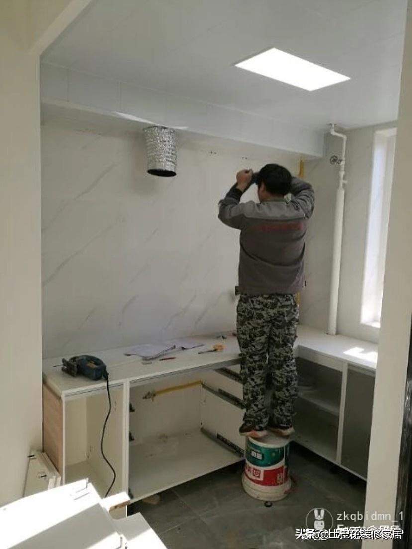 厨卫集成吊顶安装—-工期不紧张的可以等油漆全部做好,这样比较卫生。先安装热水器和浴霸,安装好后,吊顶封边才能更好地半包热水器,也就是更美观地衔接了