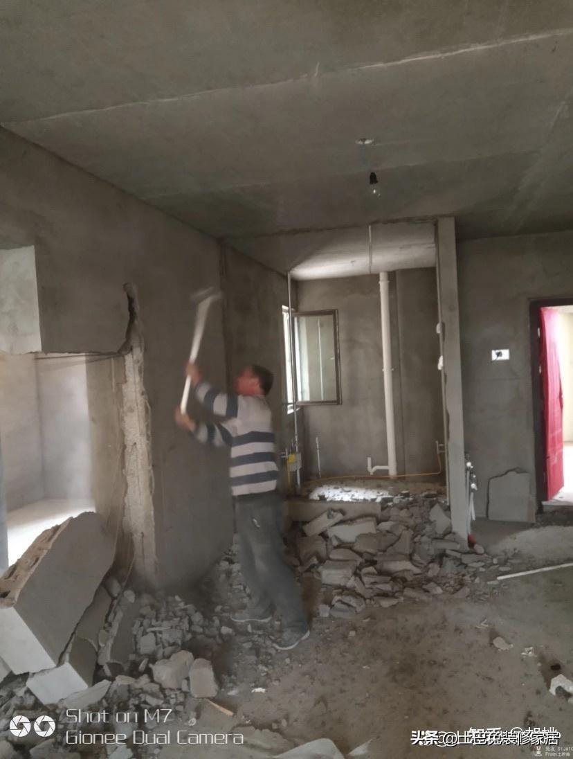 ②不要一上来就用力砸墙,而是应该先做好大块墙体的切割,再慢慢进行砸墙。