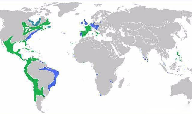 绿色地区为法国和西班牙人的地盘