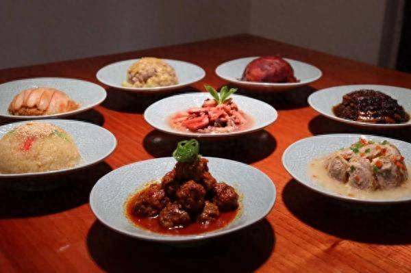 “荷花豆腐”,把鲜嫩的白豆腐切为花瓣,以薄荷尖为叶,以一个个白黄相间的鹌鹑蛋为花蕊,一朵漂亮又美味的“荷花”跃然盘上。
