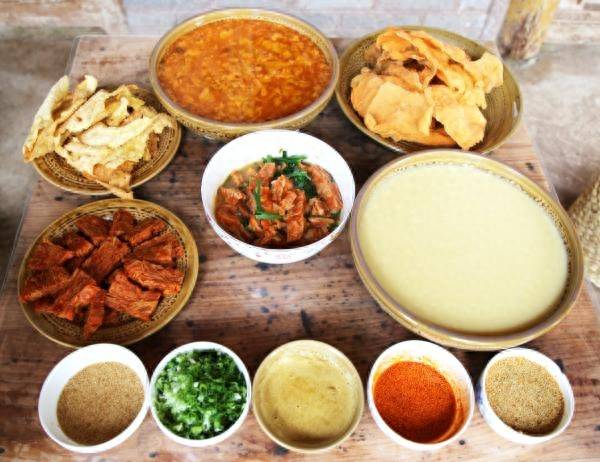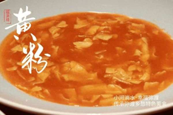 在寅街,流传着这样一句俗语“黄粉下酒,越吃越有”。对于弥渡人来说,黄粉不仅仅是一种满足味蕾的美食,它还包含着一种亲切温暖的特殊情愫。在大冬天的早晨,来上一碗热气腾腾的稀黄粉,加上花椒油、芥末、辣椒酱、姜末、葱末、蒜末(水),吃起来满口鲜爽,绵香四溢,一整天身子都是暖烘烘的。