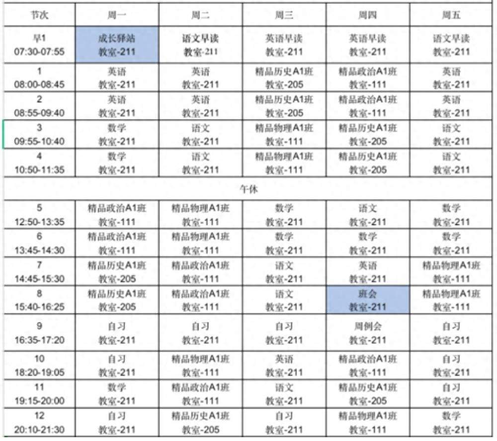 (一所高考复读学校2023年上半年课表 受访者供图)
