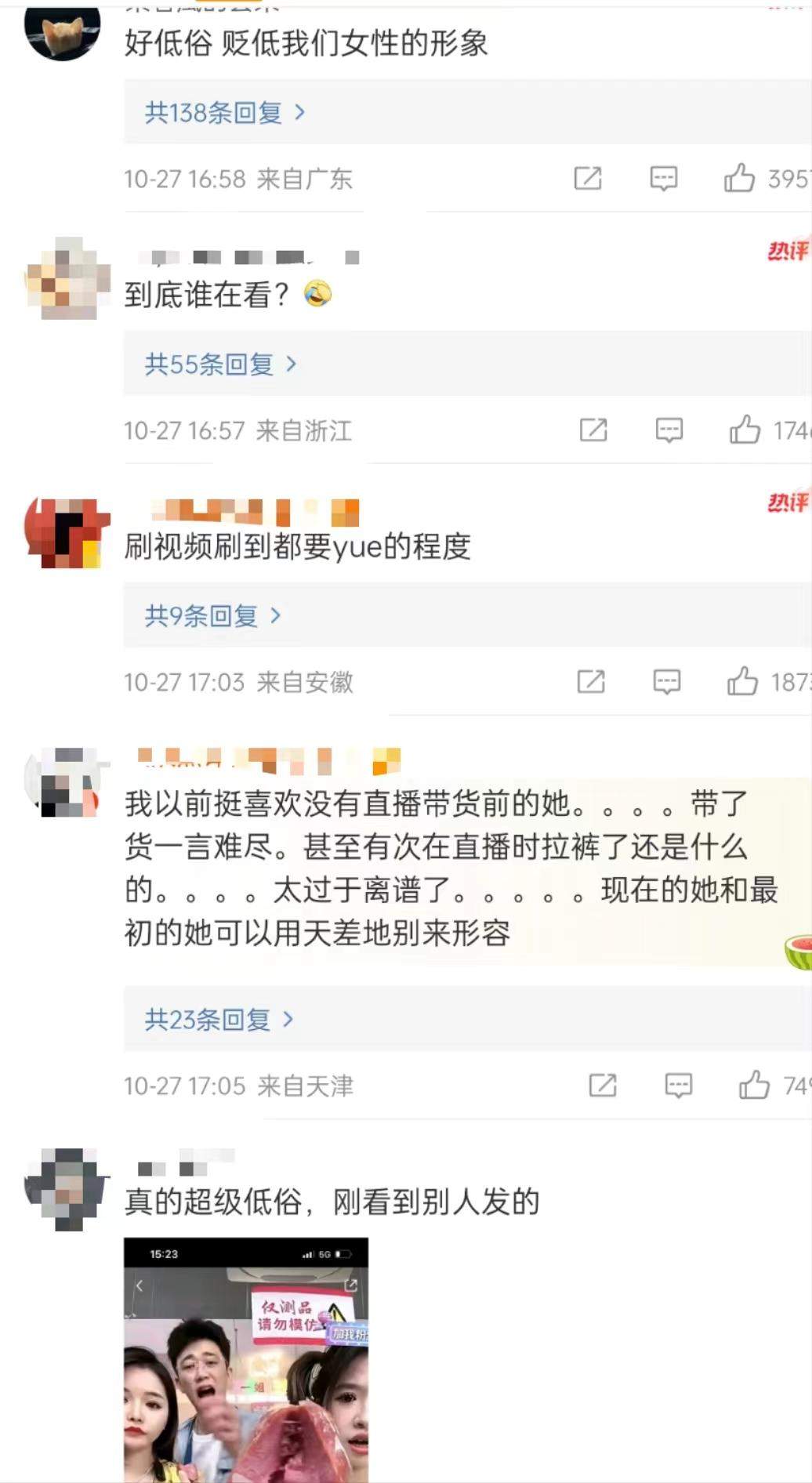 她从扮丑沦为卖丑,才艺展示变成了各种引人不适意有所指的动作。另外,她还多次无视平台发布的直播间规则。