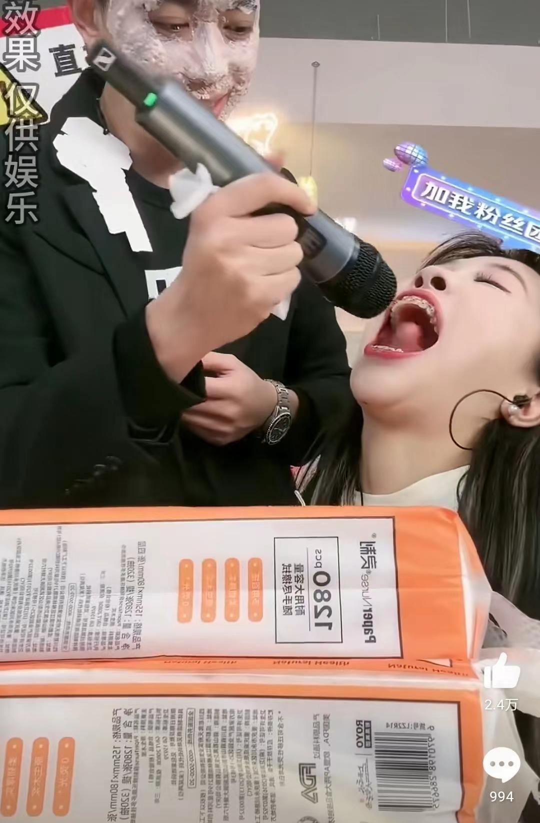 明知不允许在直播间饮酒,她偏喝。让男助理手持话筒放在嘴边,她伸出舌头做动作。让女助理侧身跳绳,特意展示她晃动的胸部,自己还在一旁做舔嘴的表情。
