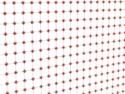 在二维晶格中,由于原子之间的弹性连接,一个或多个原子从其平衡位置的位移产生了一组通过晶格传播的振动波,在下图中,我们以λ来标记平面振动波的波长: